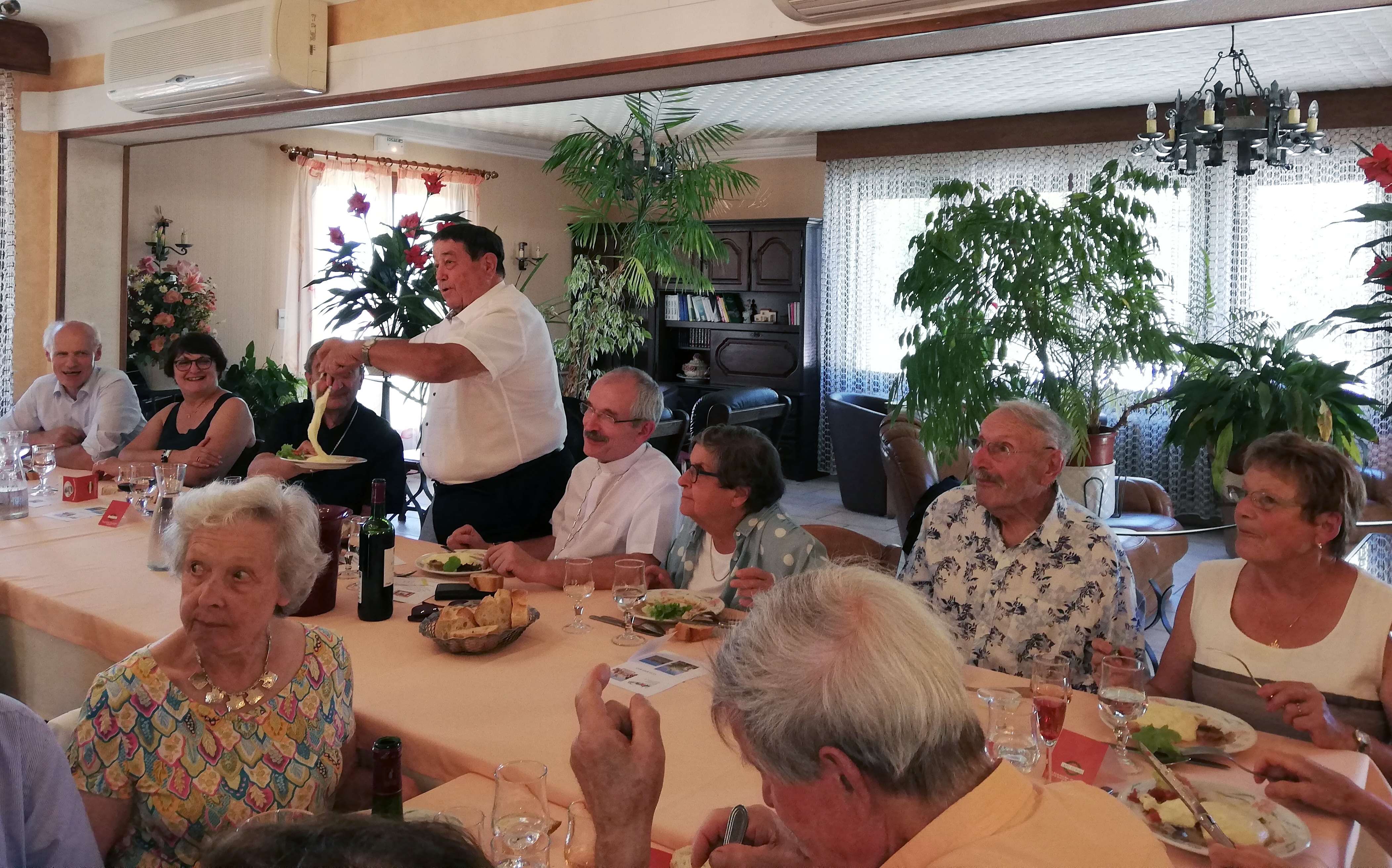 Après un dernier rafraîchissement le groupe a repris la route. Il faut remercier tous ceux qui ont permis la réussite de cette belle journée et en particulier M. Turlan, Mgr Fonlupt, Mgr Soubrier, le père Ricard et Mmes Boyer, Coulet, Gros, Thomas, Béatrice Berthiol et aussi à Jeanine et Lucette !