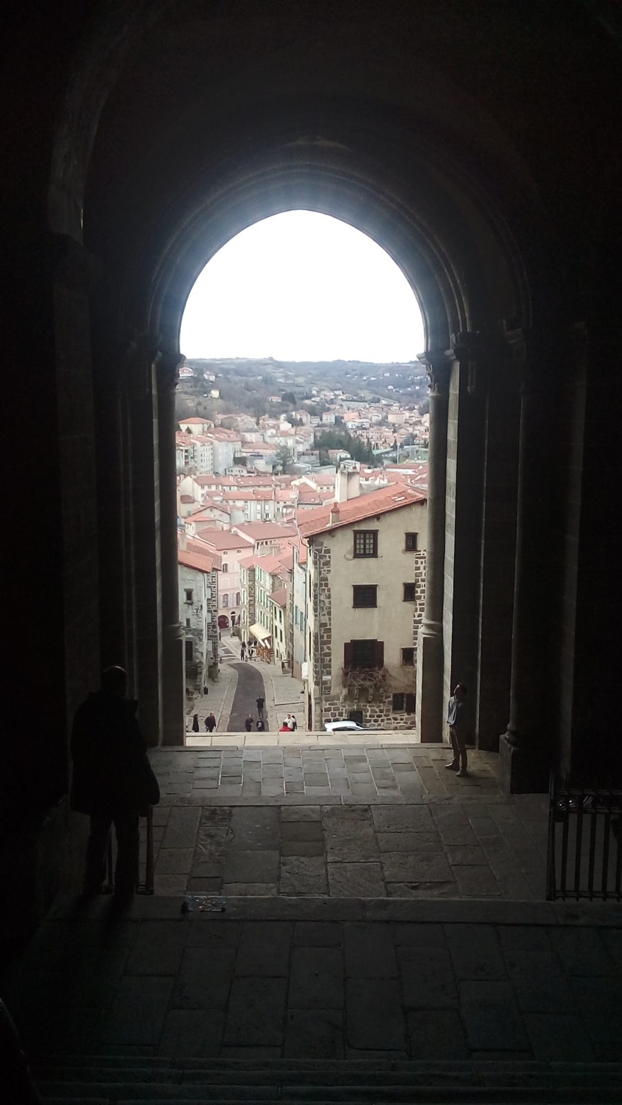 En premier lieu le Père Barrié nous a fait un enseignement sur Marie et donné des explications sur La Vierge Noire. Ensuite avec Joachim, un jeune guide, nous avons remonté les marches de la cathédrale où se cachent, au dessus de nos têtes, de véritables trésors bibliques, et foulé de nos pieds les marches qu’empruntent les pèlerins de St Jacques au moment de leur départ vers le Camino; moment pleins d’émotions …Nous avons prié ensemble devant La Vierge Noire .