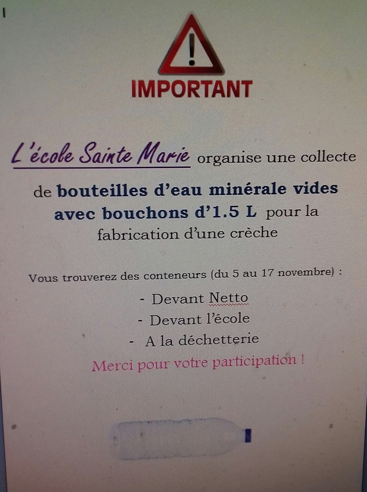 Merci aussi à tous pour votre participation à la collecte des bouteilles.