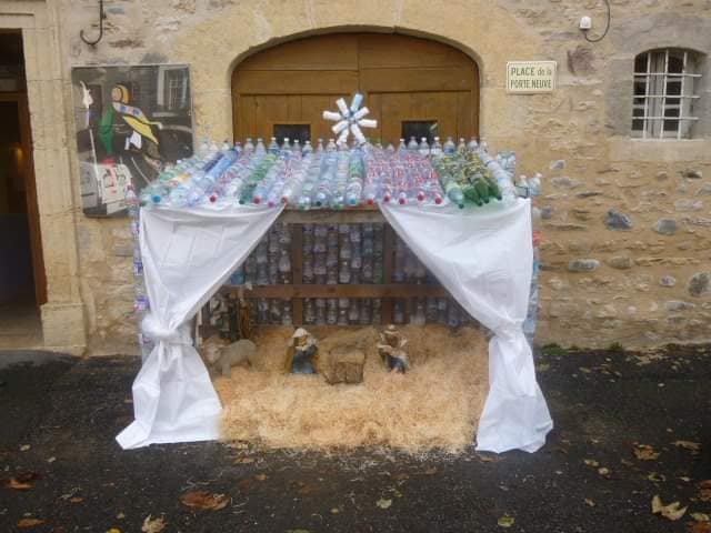 Une crèche originale faite avec des matériaux récupérés bouteilles plastiques palettes…