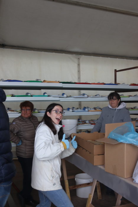 C’est pour cela que dès 7 h 30 l’équipe de bénévoles du groupe solidarité de Bozouls , Espalion, Laissac était là pour accomplir une tâche confiée à l’association « Jamais sans Toit », c’est-à-dire préparer les plateaux repas pour environ 2000 personnes .