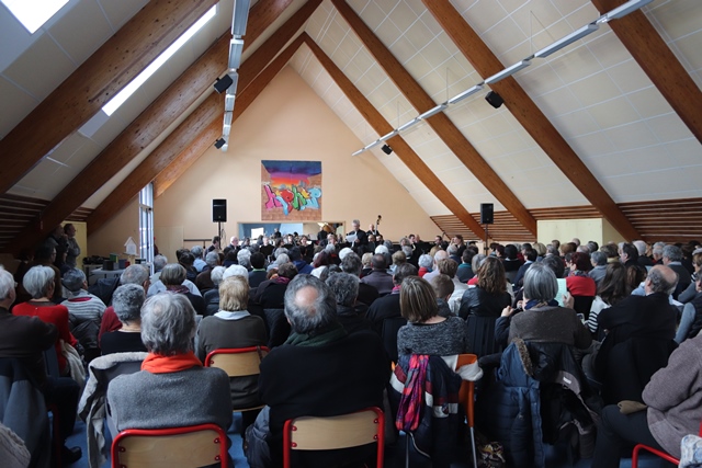Et c’est pour récolter de l’argent que le groupe “Solidarité”, sur la proposition de Jean Luc Barrié (musicien de l’orchestre), a accueilli “Alio Modo Orchestra”. Cet ensemble venu bénévolement est formé de vingt amis musiciens qui se réunissent pour le plaisir de jouer de concert.
