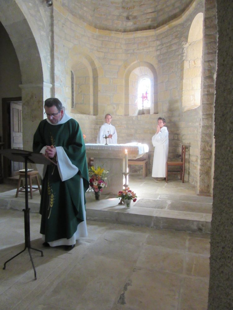 A 10h30, les cloches de l’église résonnaient pour inviter les paroissiens des villages alentours à participer à la messe célébrée par le Père Jean-Luc Barrié. L’office religieux rassemblait de nombreuses personnes venues des commune de Coubisou, Estaing et Espalion ; on notait aussi la présence des maires Jean Pradalier (Estaing) et Bernadette Azémar (Coubisou). De jeunes enfants — Pauline, Nathan, Paulin, Yaël et Gabin — prenaient part à la célébration, préparée par le relais paroissial Coubisou et Vinnac, dont la liturgie du jour portait bien entendu sur la croix et sa signification.