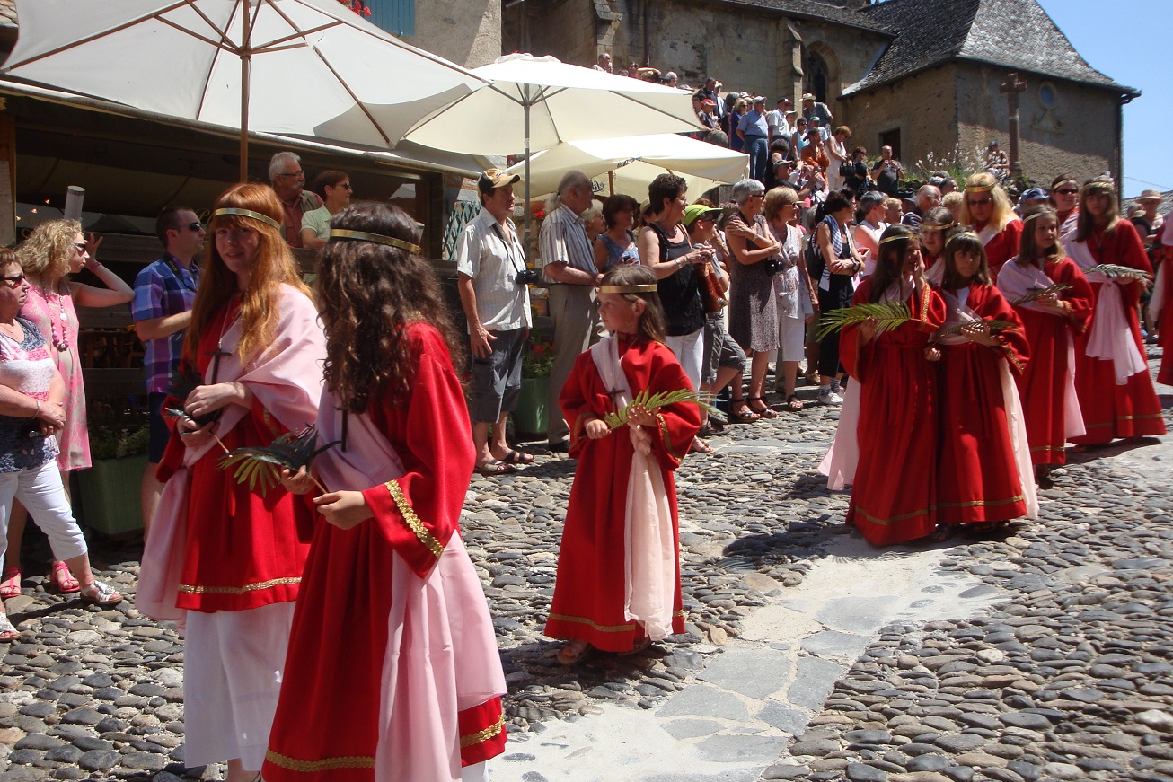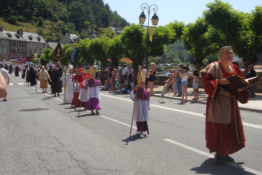 Les estagnols costumés (150) représentent l’Eglise d’hier et d’aujourd’hui, les saints, les archanges et différentes fonctions ecclésiastiques ainsi que quelques personnalités du Comté d’Estaing.