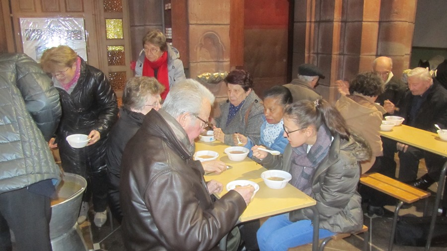 Mercredi pour répondre à ce message, après la messe des cendres, des paroissiens se sont rassemblés autour d’une soupe amoureusement préparée par l’équipe de bénévoles du CCFD. Une occasion de se retrouver entre personnes de différents relais pour échanger en toute simplicité.