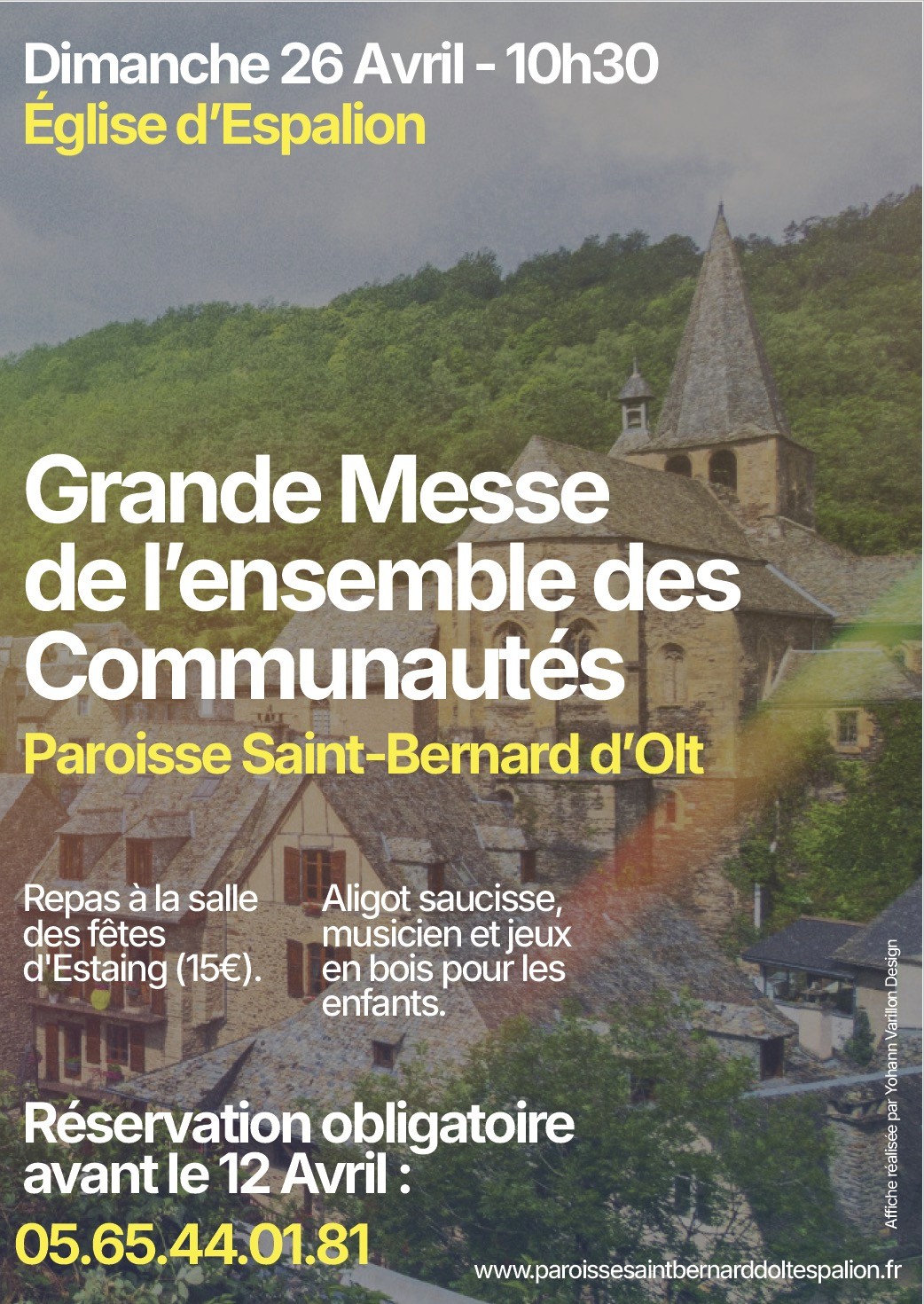 Rejoignez-nous pour la Grande Messe de l'ensemble des communautés de la paroisse Saint-Bernard d'Olt !
